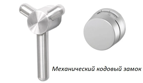 - На дверь установлен американский механический кодовый замок, обладающий высоким классом секретности. Замок открывает цифровая комбинация, которая выставляется поворотами дисков.